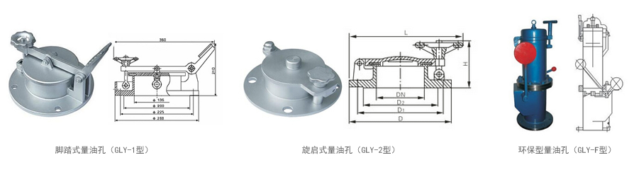 量油孔是儲(chǔ)油罐頂部的主要設(shè)備之一,量油孔裝于油罐頂部。主要用來測量罐內(nèi)油面高低和調(diào)取油樣的專門附件。每個(gè)油罐頂上設(shè)置一個(gè),大都設(shè)在罐梯平臺(tái)附近。測量孔的直徑為150毫米,設(shè)有能密閉的孔蓋和松緊螺栓,為了防止關(guān)閉時(shí)孔蓋與鐵器撞擊產(chǎn)生火花,在孔蓋的密封槽內(nèi)嵌有耐油膠墊或軟金屬(銅或鋁)。由于測量用的鋼卷尺接觸出口容易摩擦產(chǎn)生火花,因此在孔管內(nèi)側(cè)鑲有銅(或鋁)套,或都在固定的測量點(diǎn)外裝設(shè)不會(huì)產(chǎn)生火花的有色金屬導(dǎo)向槽(投尺槽)。