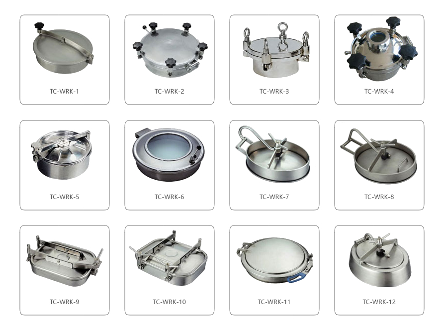 結(jié)構(gòu)特點:衛(wèi)生級人孔采用快開式結(jié)構(gòu),開啟方便、安全, 外形實用美觀;