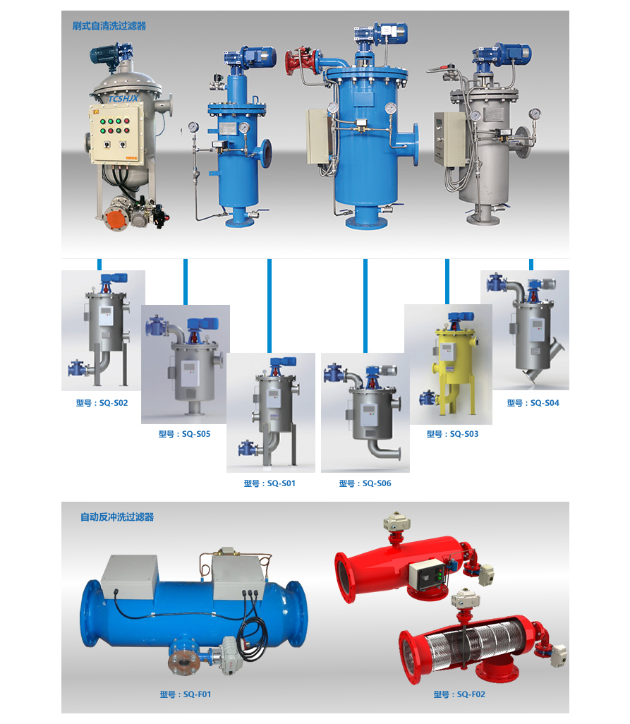 根據(jù)過濾器清洗方式及工作原理,產(chǎn)品分為兩大類:刷式自清洗過濾器、自動反沖洗過濾器。