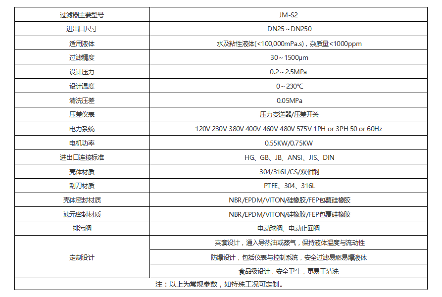 JM-S2型電動刮刀過濾器,是我司自主研發(fā)的新一代機械自清洗過濾器,已達到業(yè)界領(lǐng)先技術(shù)水平。與反沖型自清洗水過濾器不同,刮刀過濾器不公用于水過濾,更廣泛適用于溶劑,酸堿液,聚合物,涂料等粘性物料的自清洗過濾,效率更高,精度范圍30-1500微米,可以處理粘度高達100,000厘泊的液體,應(yīng)用于水處理、石化、冶金、電力、精細化工、涂料、油墨、造紙、食品飲料、制藥、金屬加工等行業(yè)。