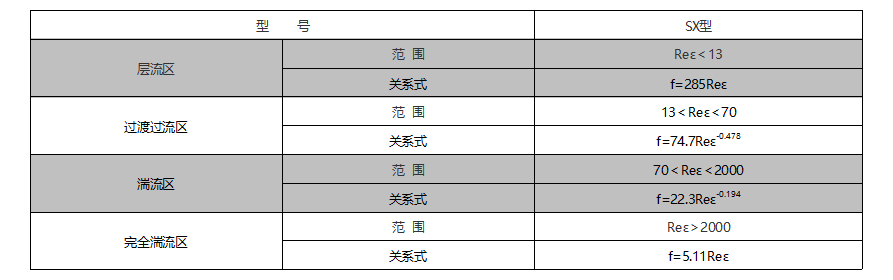 SX型的雷諾數(shù)Reε和磨擦系數(shù)f的關(guān)系